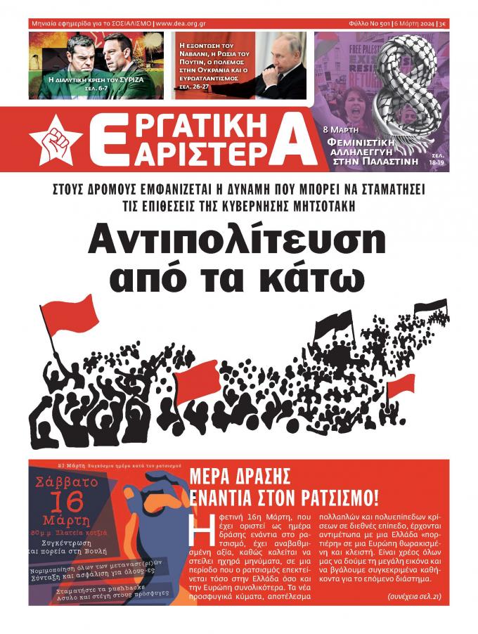Στις συγκεκριμένες συνθήκες η προσπάθεια για τη διατήρηση των αγώνων από τα κάτω στο προσκήνιο, παίρνει καθοριστικές πολιτικές διαστάσεις. Οι απεργοί, οι αγρότες, οι φοιτητές, είναι η πιο απειλητική αντιπολίτευση για τον Μητσοτάκη. Και, ταυτόχρονα, οι πρωτοβουλίες για μια σοβαρή και αποτελεσματική ανασυγκρότηση της ριζοσπαστικής/αντικαπιταλιστικής Αριστεράς γίνονται επείγουσες και αναγκαίες.