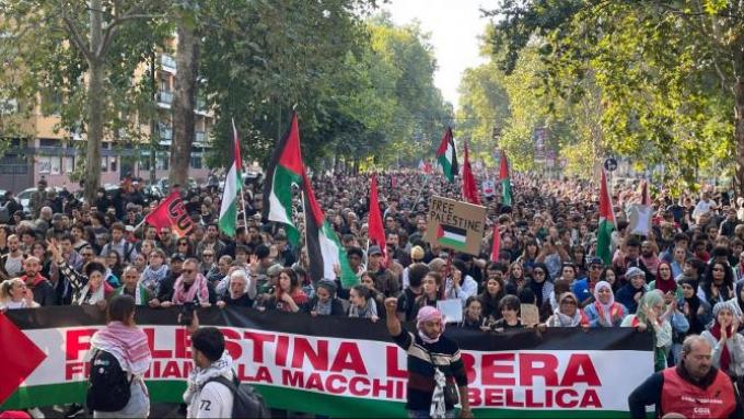 Όμως τα πιο σημαντικά νέα ήρθαν από το κίνημα στην Ιταλία, που (τιμώντας την ιστορία του) προσφέρει το πιο προχωρημένο υπόδειγμα.Στις 22 Σεπτέμβρη, τα συνδικάτα βάσης (USB) κάλεσαν σε 24ωρη γενική απεργία ενάντια στη γενοκτονία στη Γάζα, τον αποκλεισμό της ανθρωπιστικής βοήθειας και τις απειλές ενάντια στον διεθνή Στόλο που επιχειρούσε να σπάσει τον αποκλεισμό. Η συμμετοχή και το μέγεθος των διαδηλώσεων ξεπέρασε κατά πολύ τις συνηθισμένες δυνατότητες των USB. Όταν ο Ισραηλινός Στρατός ανέκοψε βίαια την πορεία του Στόλου, μεγάλα πλήθη κατέβηκαν στους δρόμους σε όλη τη χώρα, καταλαμβάνοντας ή μπλοκάροντας σιδηροδρομικούς σταθμούς, πανεπιστήμια και λιμάνια. Στις 3 Οκτώβρη, ένα νέο απεργιακό κάλεσμα ήταν κοινό: Από τα USB και την CGIL, τη μεγαλύτερη γενική εργατική συνομοσπονδία της χώρας. Ο Σαλβίνι την κήρυξε παράνομη και στη συνέχεια απείλησε ότι «όποιος απεργήσει κινδυνεύει με προσωπικές κυρώσεις». Δεν του πέρασε: Πάνω από 2 εκατομμύρια άνθρωποι κατέβηκαν στους δρόμους και η CGIL ανακοίνωσε συμμετοχή 60% στην απεργία (και πάνω από 80% σε κλάδους όπως οι μεταλλεργάτες). Έκτοτε, οι μεγάλες διαδηλώσεις έχουν γίνει σχεδόν καθημερινό φαινόμενο.