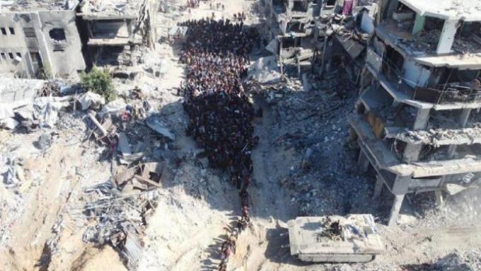 Ο ισραηλινός στρατός βομβαρδίζει καταφύγια εκτοπισμένων, εισβάλει σε νοσοκομεία, χτυπά κτίρια, με ντόπιους να καταφεύγουν στο τουίτερ για να περιγράψουν μια κόλαση όπου «ο θάνατος είναι παντού γύρω μας». Τις πρώτες 3 εβδομάδες είχαν σκοτωθεί πάνω από 1.000 άνθρωποι. Αναλογικά με τον πληθυσμό που έχει παραμείνει στη βόρεια Γάζα, ο ρυθμός εξόντωσης θυμίζει τους πρώτους 2 μήνες του πολέμου. Στις 23 Οκτώβρη, η ισραηλινή κυβέρνηση παραδέχτηκε δημόσια ότι δεν είχαν περάσει καθόλου τρόφιμα μέσα στον πολιορκημένο θύλακα, επιβεβαιώνοντας ότι επέβαλε συνθήκες λιμοκτονίας επί 3 τουλάχιστον εβδομάδες. Έκτοτε, ισχυρίζεται ότι πέρασαν «κάποια φορτηγά», χωρίς να παρουσιάζει όμως αποδείξεις. Τα διασωστικά συνεργεία, οι ανθρωπιστικές ΜΚΟ, οι ομάδες του ΠΟΥ για εμβολιασμό, έχουν ανακοινώσει ότι υποχρεώνονται να αναστείλουν κάθε δραστηριότητα. Ούτε η πείνα και η εξολόθρευση αρκούσαν για να πειστούν οι κάτοικοι της βόρειας Γάζας να φύγουν «εθελοντικά». Οπότε ο βίαιος εκτοπισμός πήρε ακόμα πιο άμεση-καταναγκαστική μορφή. Στρατιώτες κάνουν εφόδους σε καταφύγια και υποχρεώνουν τους πρόσφυγες να φύγουν προς τα νότια υπό την απειλή επιτόπου εκτέλεσης. Οι φωτογραφίες που δημοσιεύει ο Ισραηλινός στρατός με την ουδέτερη λεζάντα «Παλαιστίνιοι που αποχωρούν», επιβεβαιώνουν ότι πρόκειται για βίαιο εξαναγκασμό υπό την κάνη όπλων. Υπάρχουν δύο ειδών ουρές ανθρώπων που «αποχωρούν». Είτε απαρτίζονται αποκλειστικά από γυναίκες και παιδιά, είτε αποκλειστικά από άντρες άνω των 16 οι οποίοι κρατάνε στο χέρι την ταυτότητά τους. Αυτό που δεν αποτυπώνει ο φακός, είναι οι Ισραηλινοί στρατιώτες που υποχρεώνουν την πρώτη ουρά να συνεχίσει να προχωρά ενώ μεταφέρει τα μέλη της δεύτερης σε κέντρα κράτησης. Εν τω μεταξύ, ο στρατός πυρπολεί, καταστρέφει και ισοπεδώνει κάθε κτίριο που εκκενώνουν οι Παλαιστίνιοι -για να μην έχουν πουθενά να επιστρέψουν.