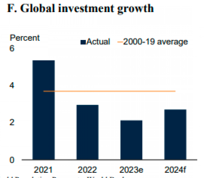 Η Παγκόσμια Τράπεζα αναμένει ότι η αύξηση του ΑΕΠ της παγκόσμιας οικονομίας θα ανέλθει σε μόλις 2,4% το 2024 -από 2,6% πέρυσι (και αυτό περιλαμβάνει την Ινδία, την Κίνα, την Ινδονησία κ.λπ. που θα αναπτυχθούν με 5-6%). Αυτό θα σηματοδοτήσει το τρίτο συνεχόμενο έτος όπου η ανάπτυξη θα αποδειχθεί ασθενέστερη εκείνης των προηγούμενων 12 μηνών. «Χωρίς μια σημαντική αλλαγή πορείας, η δεκαετία του 2020 θα καταγραφεί ως μια δεκαετία χαμένων ευκαιριών», δήλωσε ο Ίντερμιτ Τζιλ, επικεφαλής οικονομολόγος και ανώτερος αντιπρόεδρος της Παγκόσμιας Τράπεζας.