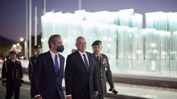 *Φωτό: Από τα εγκαίνια για την αναβάθμιση της όψης του πενταγώνου, με ρητορική υπερεξοπλισμων και «εξωτερικών απειλών». Η χρηματοδότηση του έργου αποτελεί δωρεά της εταιρείας METLEN Energy & Metals, «εθνικού πρωταθλητή» στην πολεμική βιομηχανία.